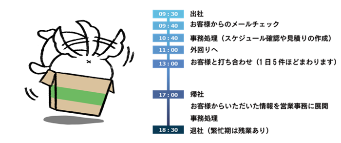 - 受注作業が円滑に進むように営業と工場のパイプとなり営業部門のオフィスワークを全般に行います。